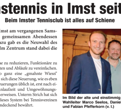 Seit die erste Homepage des TC Imst online ist (August 2010), werden Interessierte zusätzlich auch durch unregelmäßig erscheinende Newsletter über wichtige (und gelegentlich nicht ganz so wichtige 😉 Neuigkeiten wie Termine, Veranstaltungen u.v.m. auf dem Laufenden gehalten.